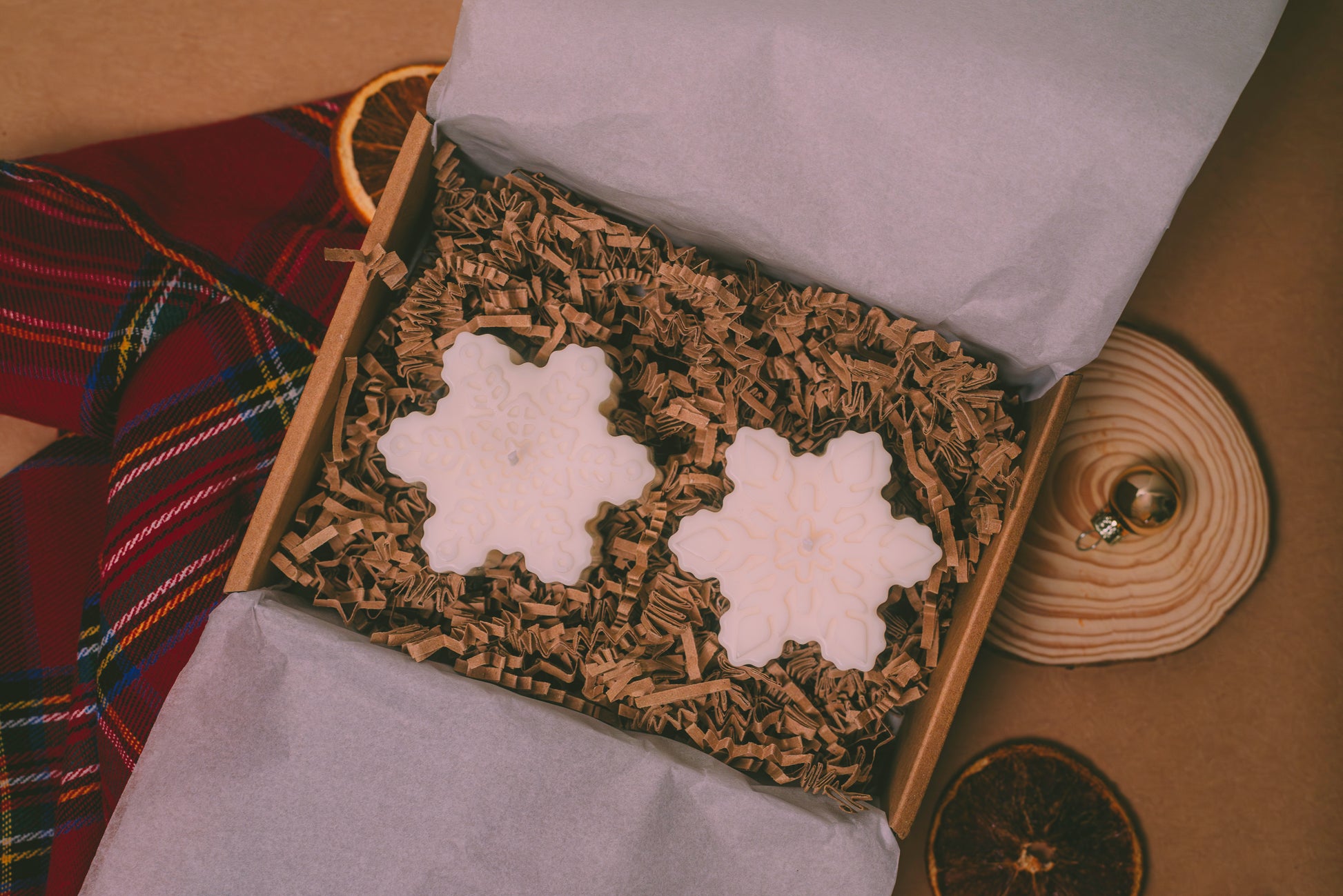 Lot de 2 bougies flocons, modèles différents mais aléatoires. Fait avec de la cire de soja.