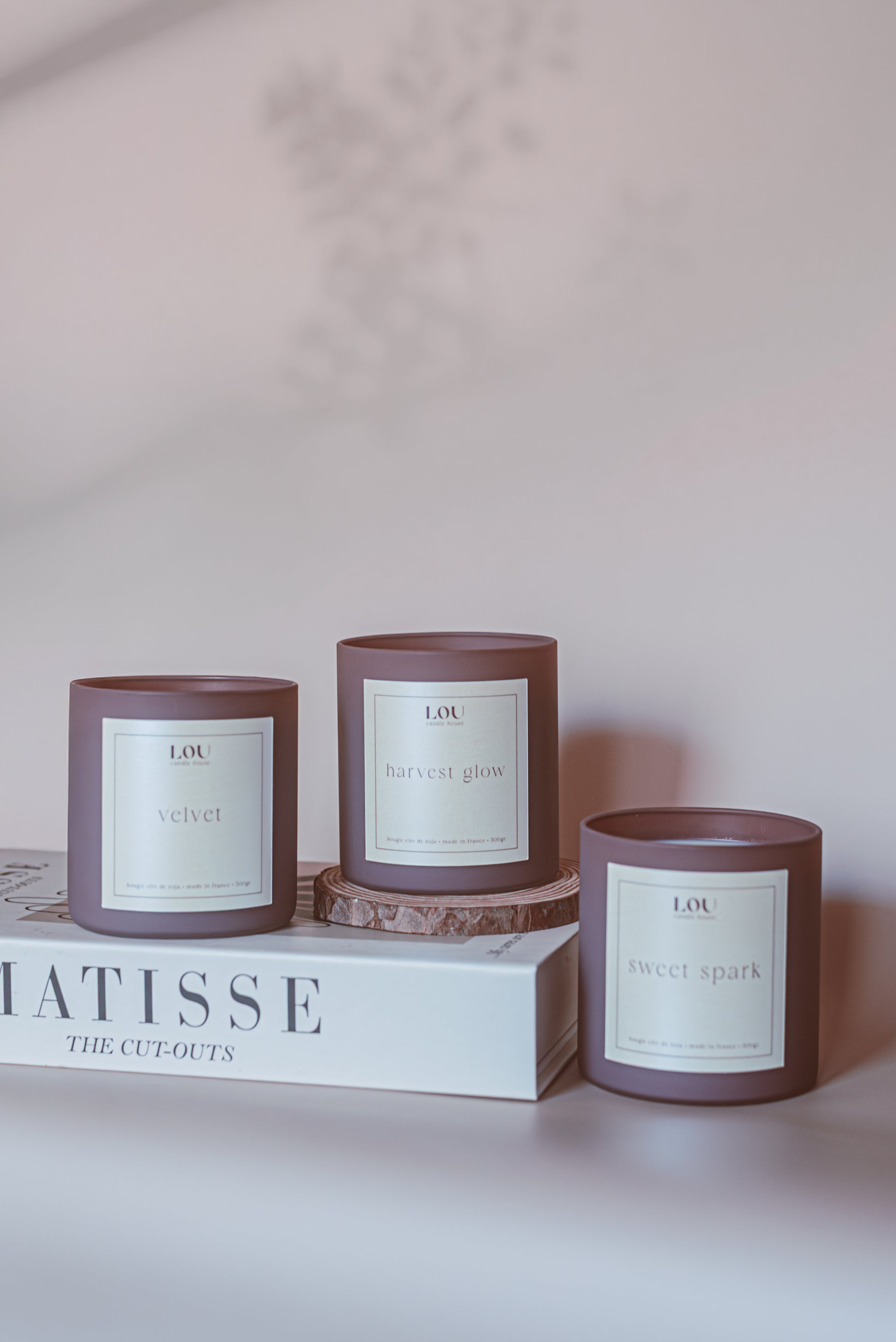 Coulée à la main en France. Toutes les bougies sont 100 % véganes et fabriquées avec des mèches en bois crépitante, offrant un moment cosy à chaque allumage.